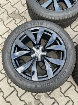Originální disky 20" VW Touareg III Montero včetně snímačů tlaku a zimních pneu Good Year 285/45/20.